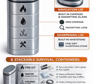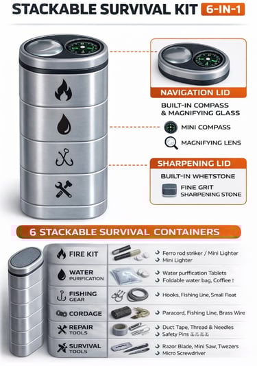 6 Pack Stackable Survival Tins 3 each Arm