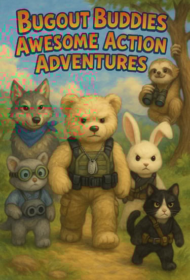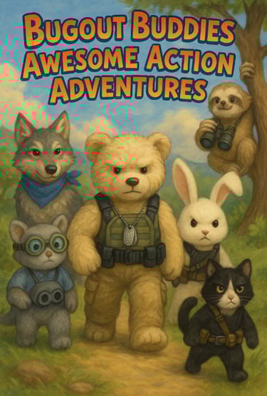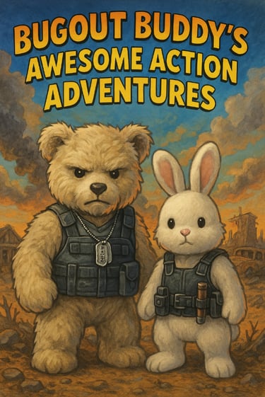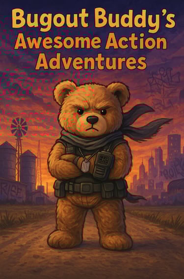 Get gear and books, stack it high. Bugout Buddy's got tails that'll make you fly. Awesome Action Adventures. Wild and bold! With daring deeds and secrets told.